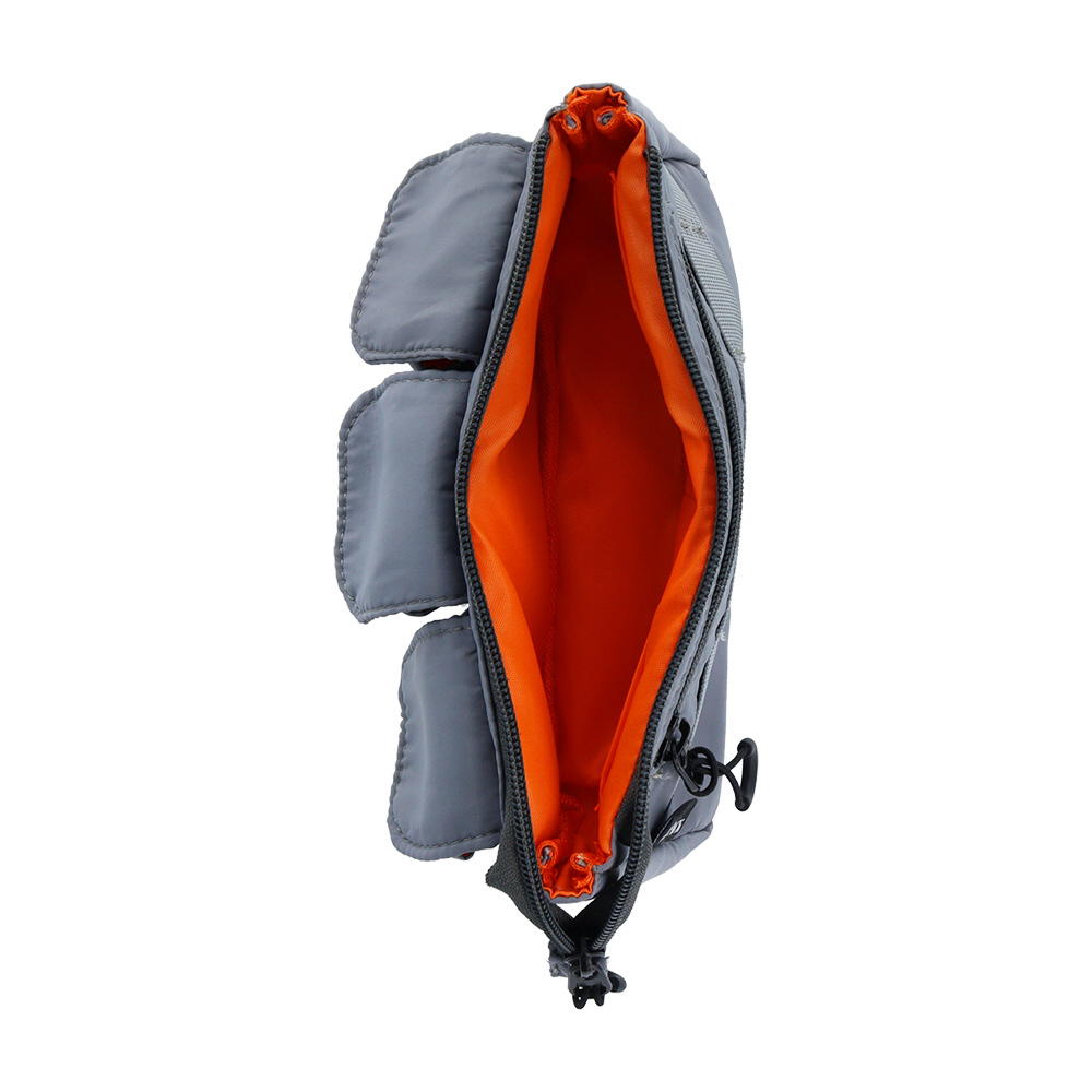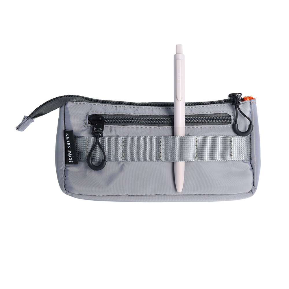 様々なサイズのポケットにたくさんのモノが収納できるペンケース、「GEARS PACK (ギアーズパック)」。柄は、ギアーズパック。デザインは、グレー。