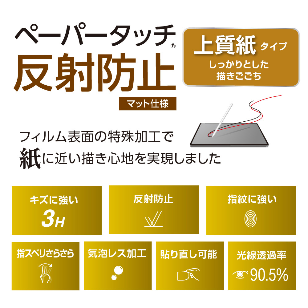 フィルム表面の特殊加工によって紙に近い書き心地を再現しました。