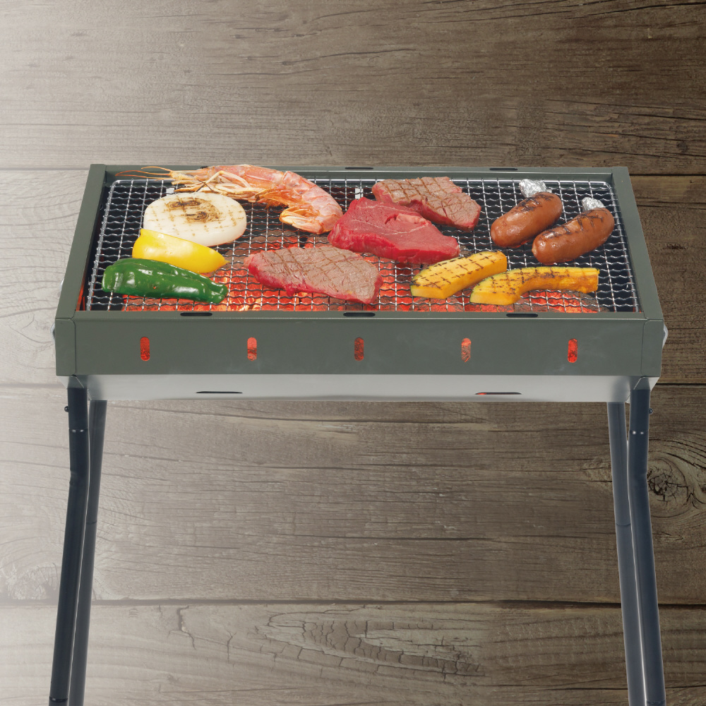 屋外で快適な炭火料理が楽しめるバーベキューコンロ。