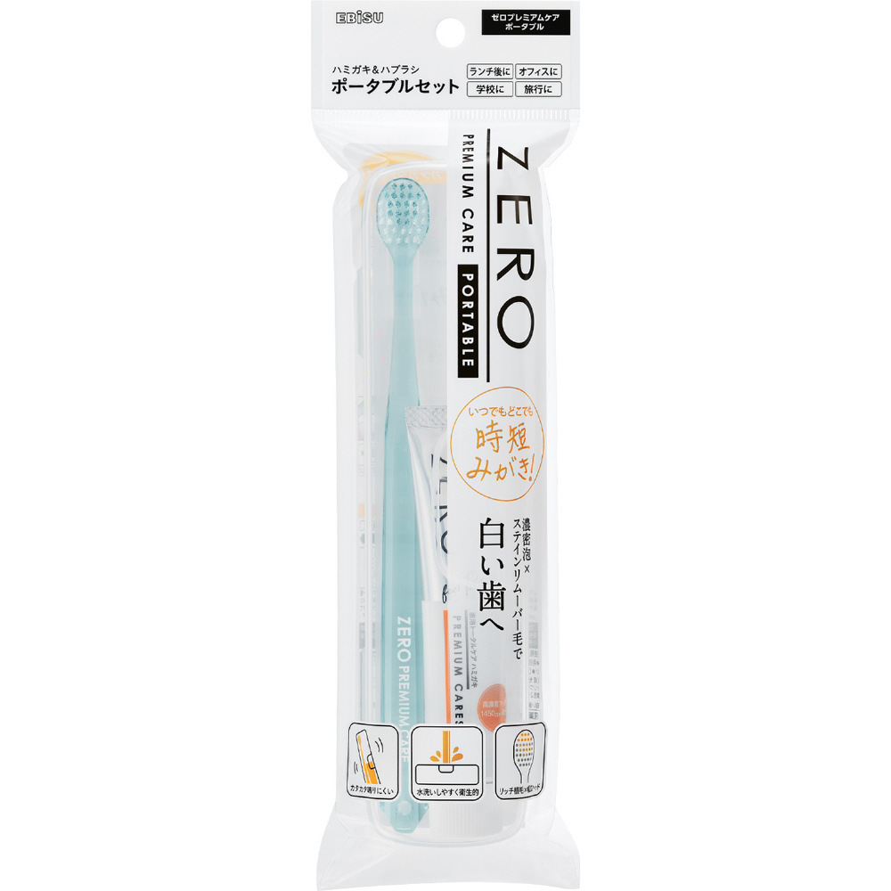 ゼロプレミアムケアシリーズのいつでもどこでも時短みがきが可能なトラベルセット(携帯用)。歯とブラシの接触面積が広い幅広×薄型のハブラシと、キメ細かな泡が磨き始めた瞬間に広がる濃密ミクロ泡処方のハミガキ(歯の美白、口臭予防、歯周病予防、むし歯予防)で簡単に効率よく時短みがきができる。ランチ後やオフィス、出張や旅行のお泊りセット、大切な予定前の口臭ケアに爽やかなシャイン・シトラスの香りでお口のエチケット。クリアなハードケースは中身をしっかり固定するのでカタカタと音がなりにくく持ち運びしやすい。<ゼロプレミアムケア・リッチコンパクト ふつう>毛・柄の材質: 飽和ポリエステル樹脂 <医薬部外品薬用トータルケアハミガキ ゼロプレミアムケアズ リフレッシュ 30g>成分: イソプロピルメチルフェノール(IPMP)、ラウロイルサルコシンナトリウム(LSS)、塩化セチルピリジニウム(CPC)、ラウリル硫酸ナトリウム、黄色203号、香料 <ケース>材質: ポリプロピレン 耐熱温度: 80度