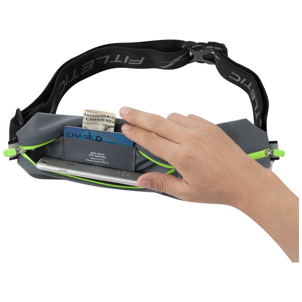 必需品の持ち運びに便利な2ポケットタイプ。揺れにくく、汗が内部に染み込まない高撥水素材を使用。