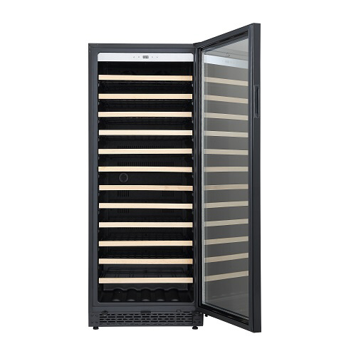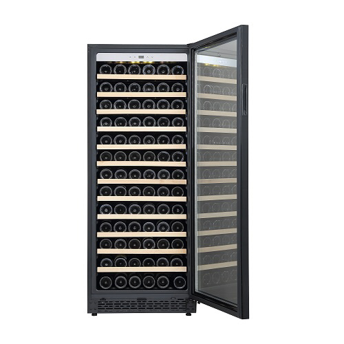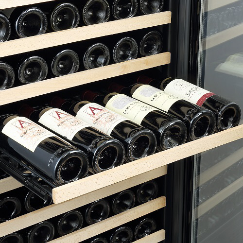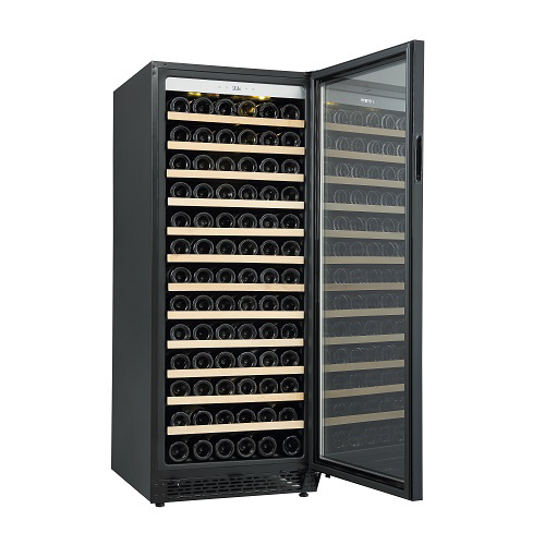 シンプルかつスタイリッシュなガラス扉に、高い安全性を確保するサイドガードを装備しています。前面排気により放熱スペースを最小限にし、据置きだけでなくビルトイン設置も可能です。使い勝手と安全性に配慮した木製飾り付きレール式スライドラックを標準装備していること加え、優れた断熱性を持つUV反射加工のLow-E複層ガラスを採用しています。ワインラヴァーの皆様が安心してワインを保管できる大型セラーです。
