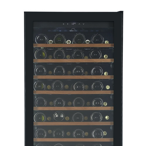 大型にも関わらず奥行を615mmに抑えた薄型設計に加え、シンプルかつスタイリッシュなガラス扉に、高い安全性を確保するサイドガードを装備しています。前面排気により放熱スペースを最小限にし、据置きだけでなくビルトイン設置も可能です。使い勝手と安全性に配慮したスライドラックを標準装備していること加え、優れた断熱性を持つUV反射加工のLow-E複層ガラスを採用しています。