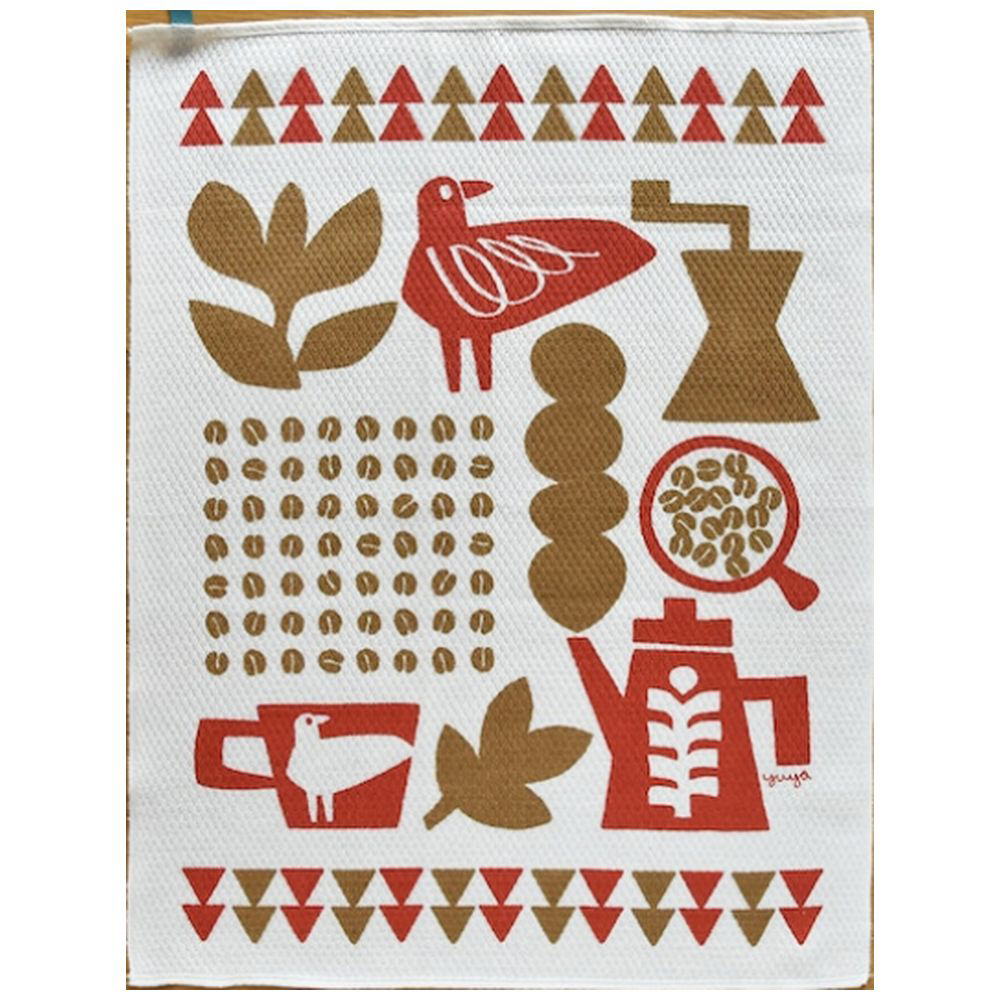 ディッシュクロス ダイヤ織 コーヒーと鳥