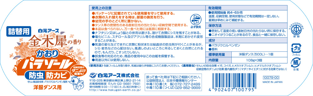 ●パラジクロルベンゼンの防カビ効果により衣類にカビを生えにくくします。