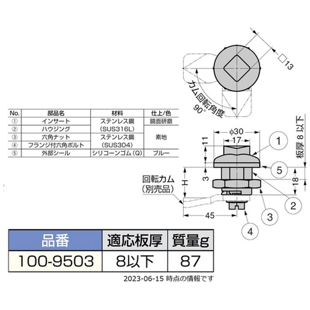 ■取付穴への挿入およびナットの装着時、カムの取り外しは不要です。