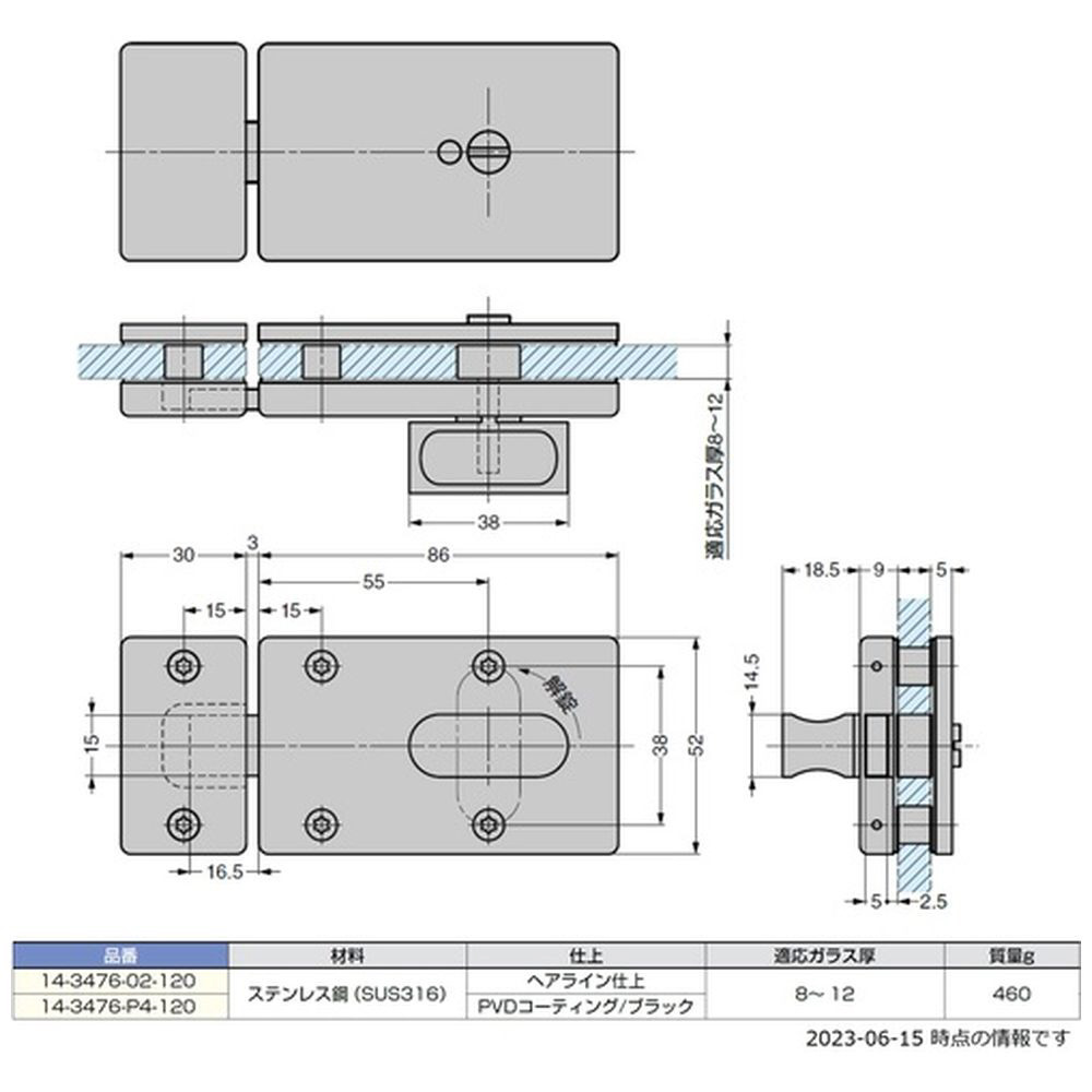 ■ご使用のガラスの端面を保護するために、別売品のガラスエッジプロテクターGP型をご使用ください。