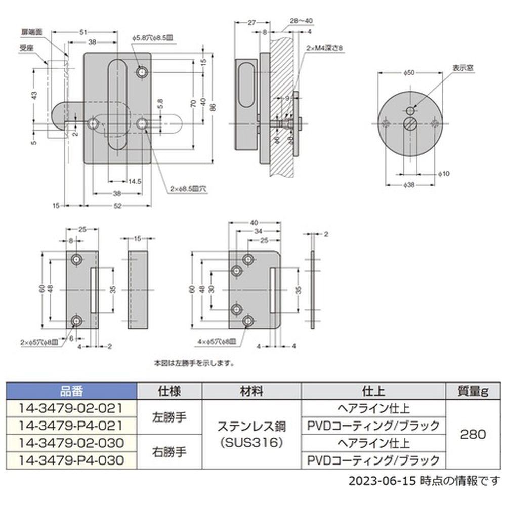 ■同じ仕上の開き戸用ラッチ錠14-3476-02-028もあります。