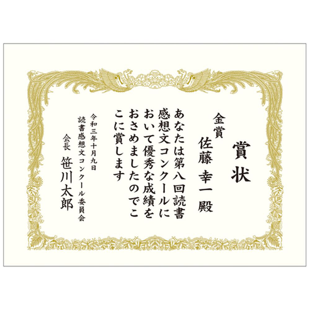 鳳凰の美しい輝きを発色の良い金インク印刷で表現した賞状です。