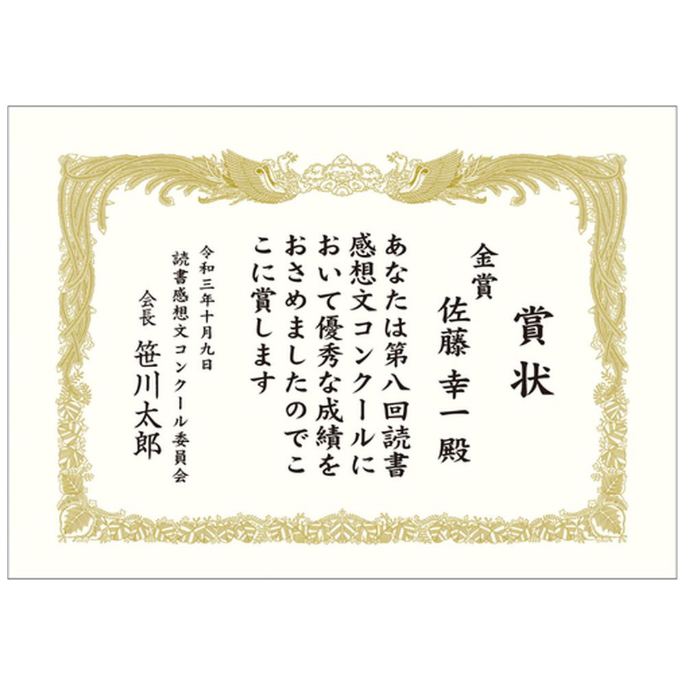 鳳凰の美しい輝きを発色の良い金インク印刷で表現した賞状です。