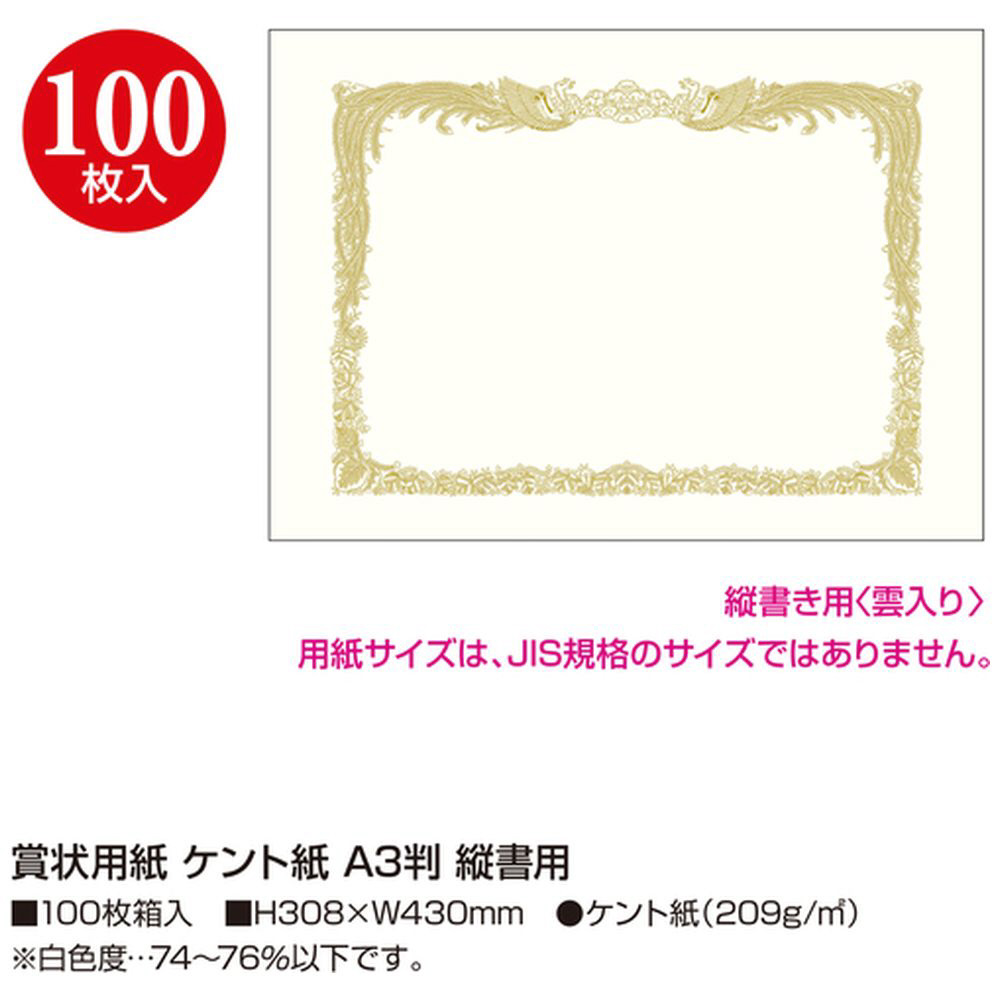 賞状用紙 A3判 縦書用 ケント紙 10-5042