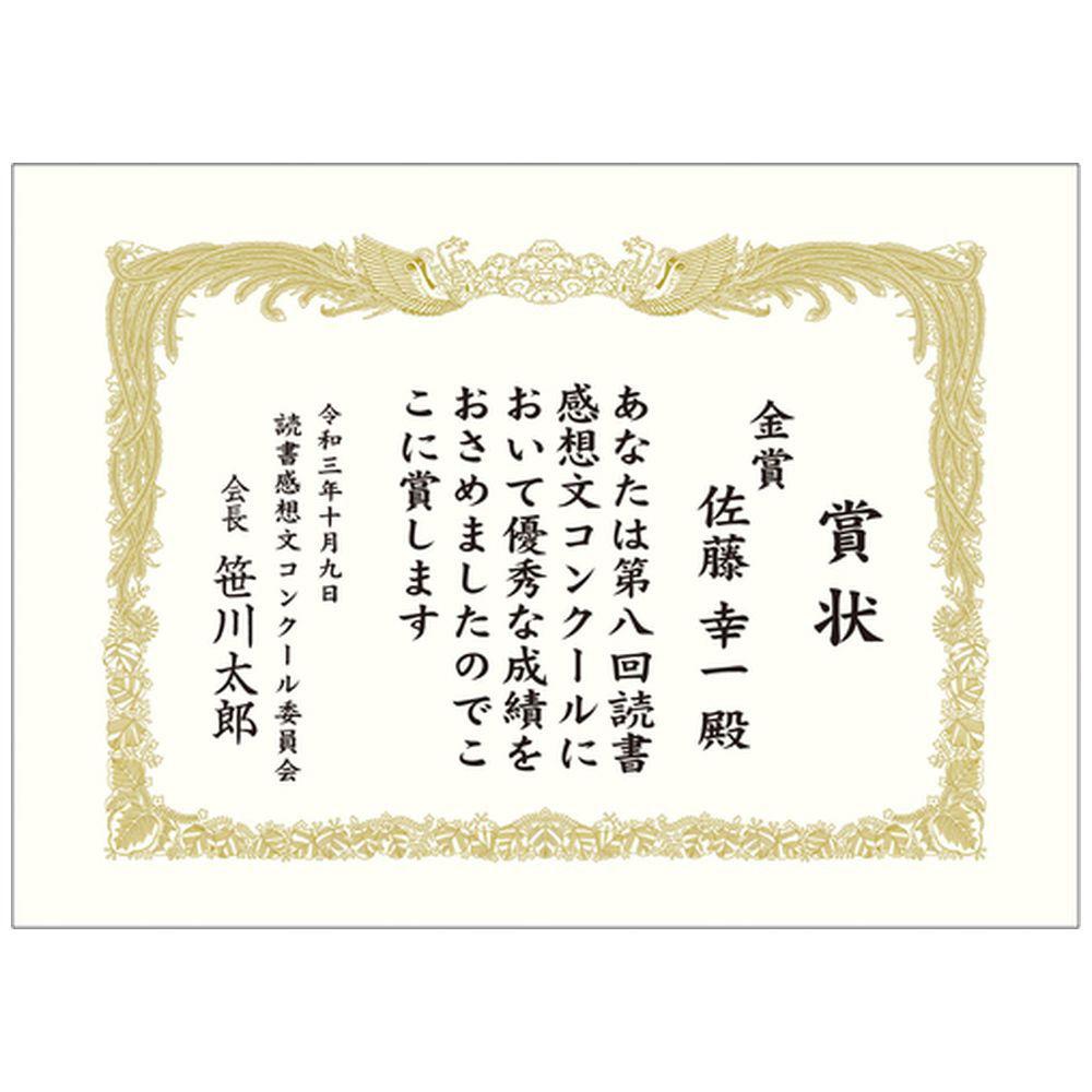 鳳凰の美しい輝きを発色の良い金インク印刷で表現した賞状です。