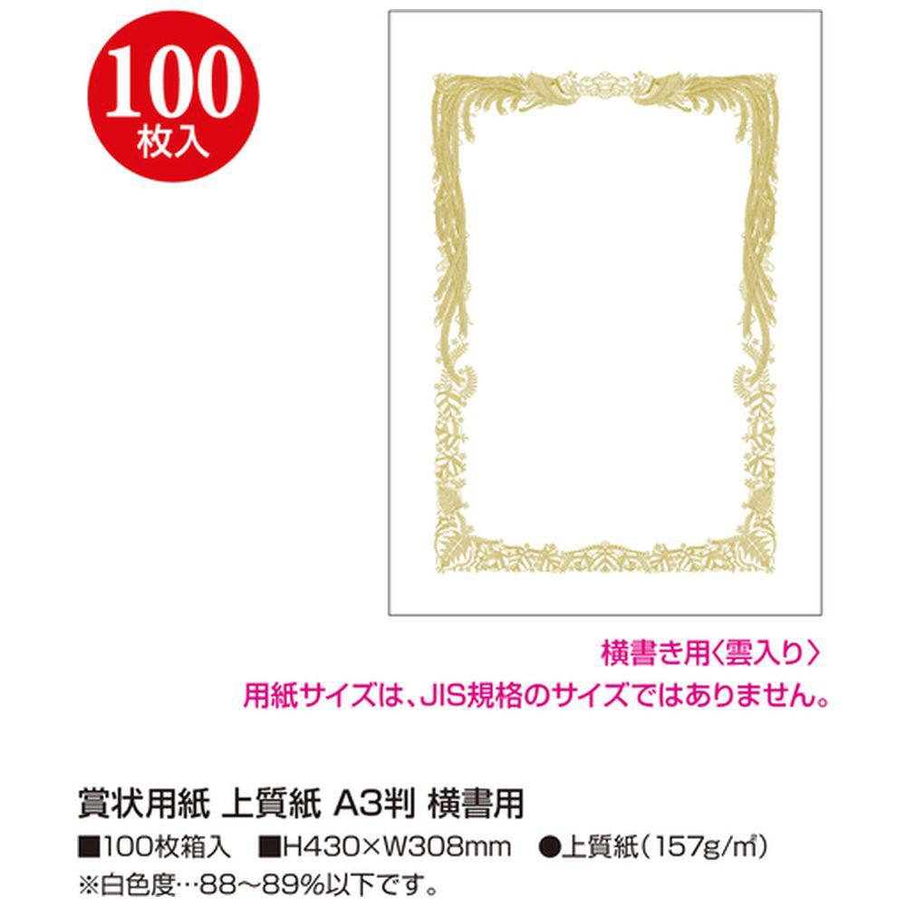 賞状用紙 A3判 横書用 上質紙 10-5041