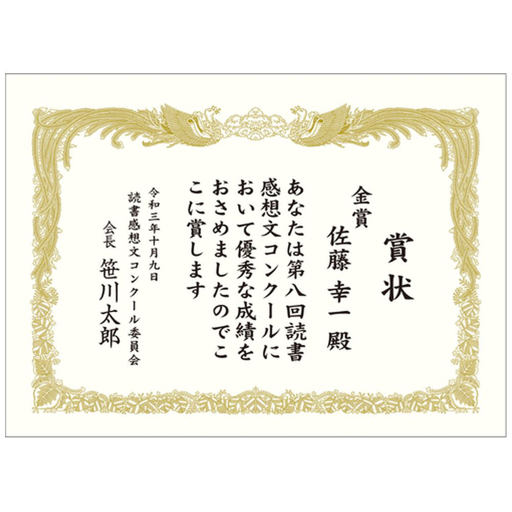 鳳凰の美しい輝きを発色の良い金インク印刷で表現した賞状です。