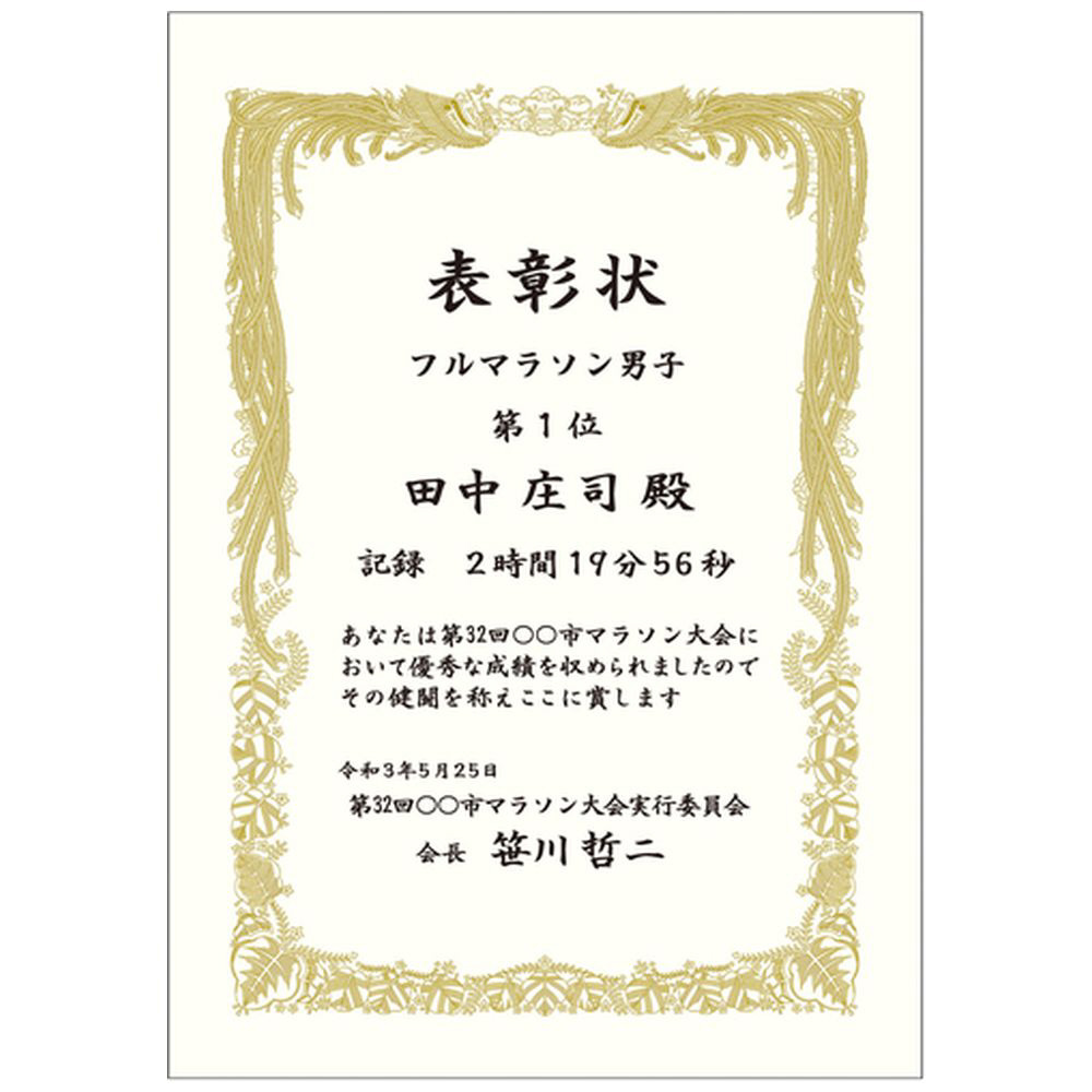 鳳凰の美しい輝きを発色の良い金インク印刷で表現した賞状です。