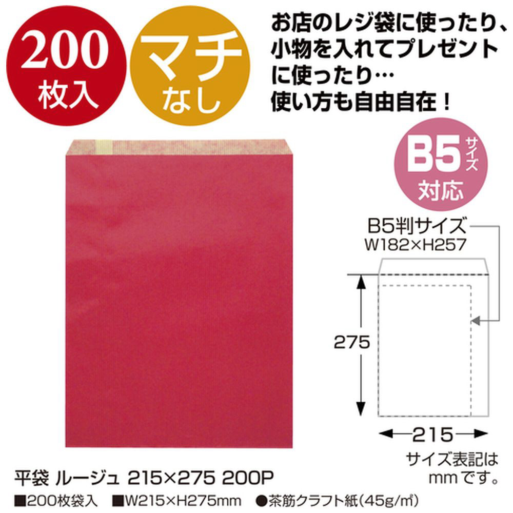 ギフトバッグ 平袋 200枚入 [215×275mm] ルージュ 50-1706