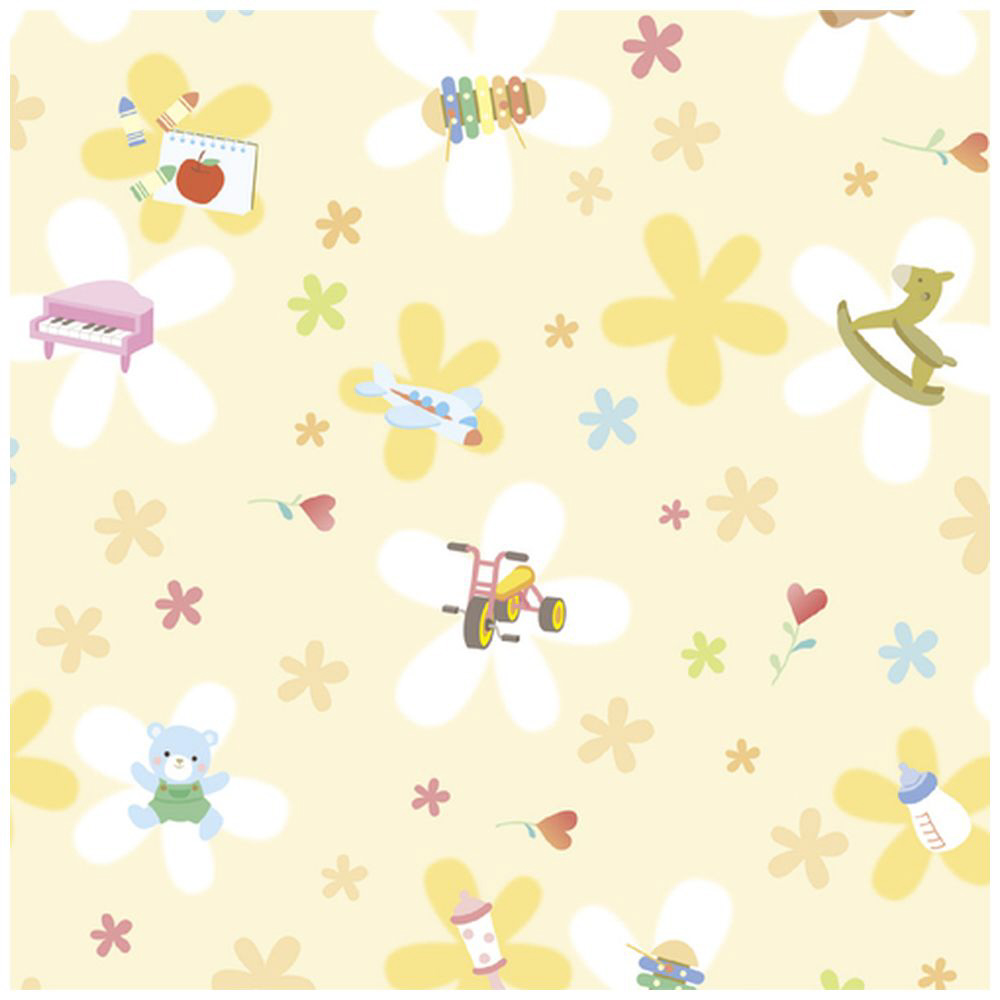 ファンシーな、子供向け柄の包装紙です。おもちゃをモチーフにしました。