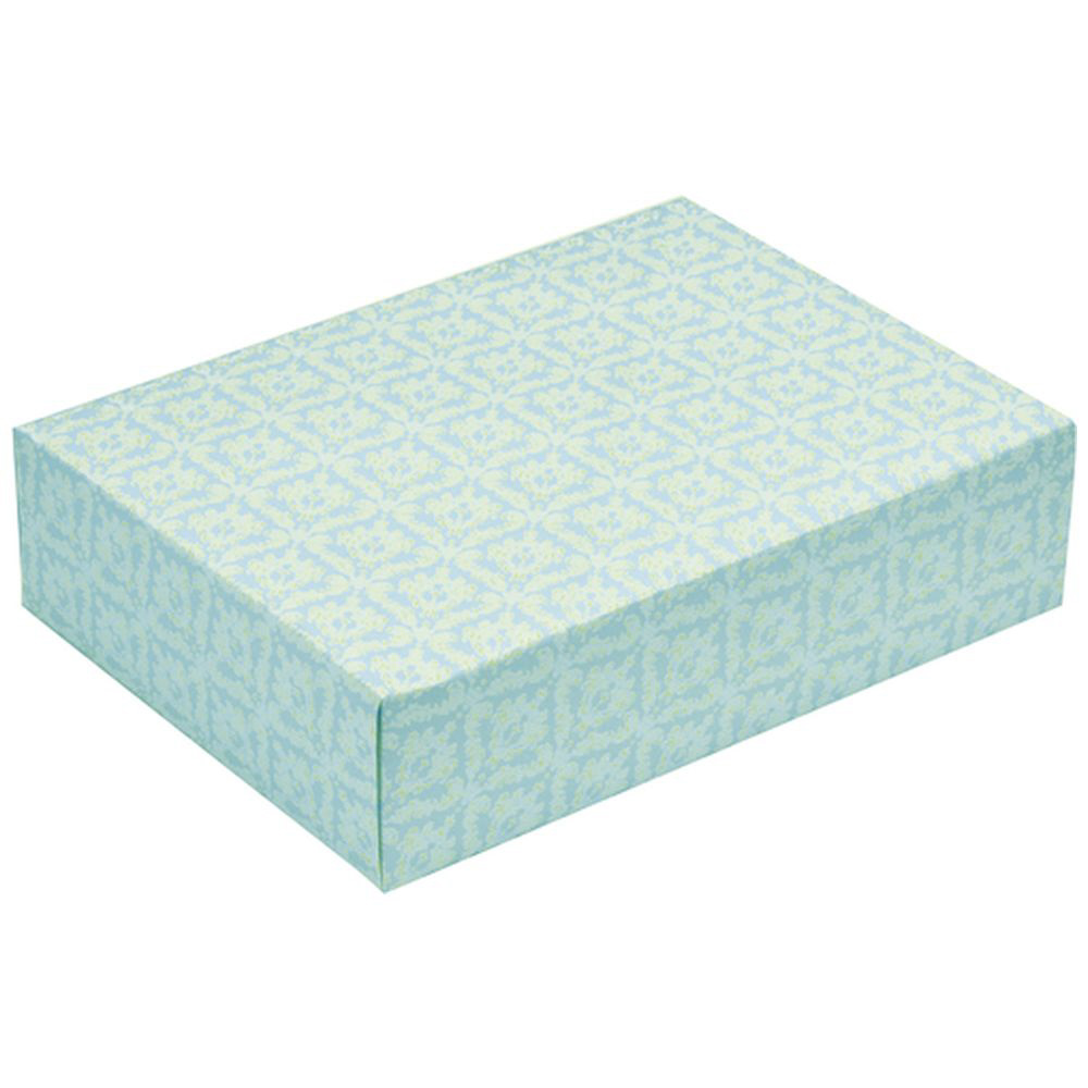 凝った意匠の文様を優しい色合いでデザインした包装紙です。