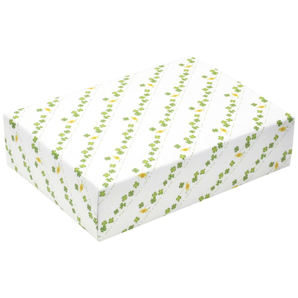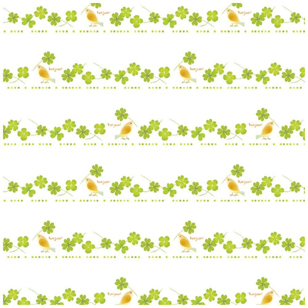 ■ファンシーなクローバー柄の包装紙です。四つ葉を小鳥が運んでいる柄です。