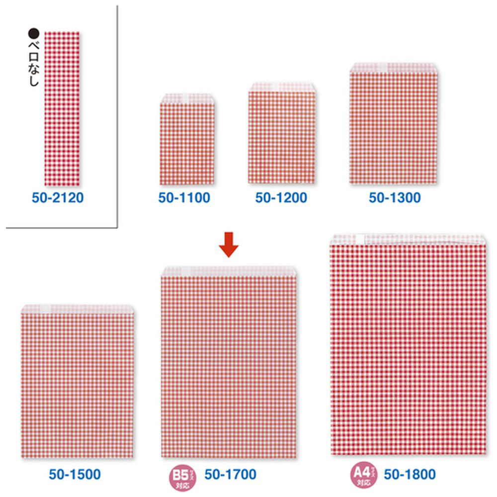 ギフトバッグ 平袋 200枚入 [215×290mm] ギンガムあか 50-1700
