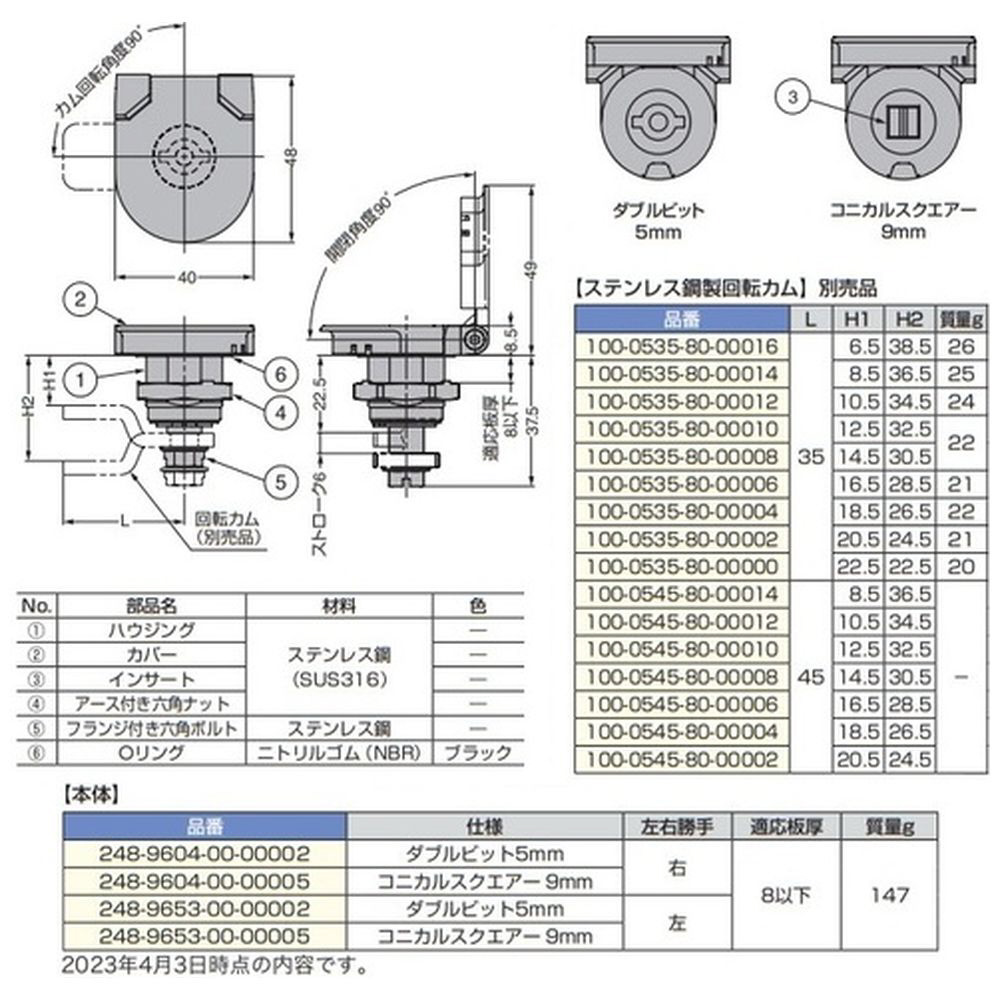 ストロークが6mmあり、大きく締め付けできるクオーターターンです。