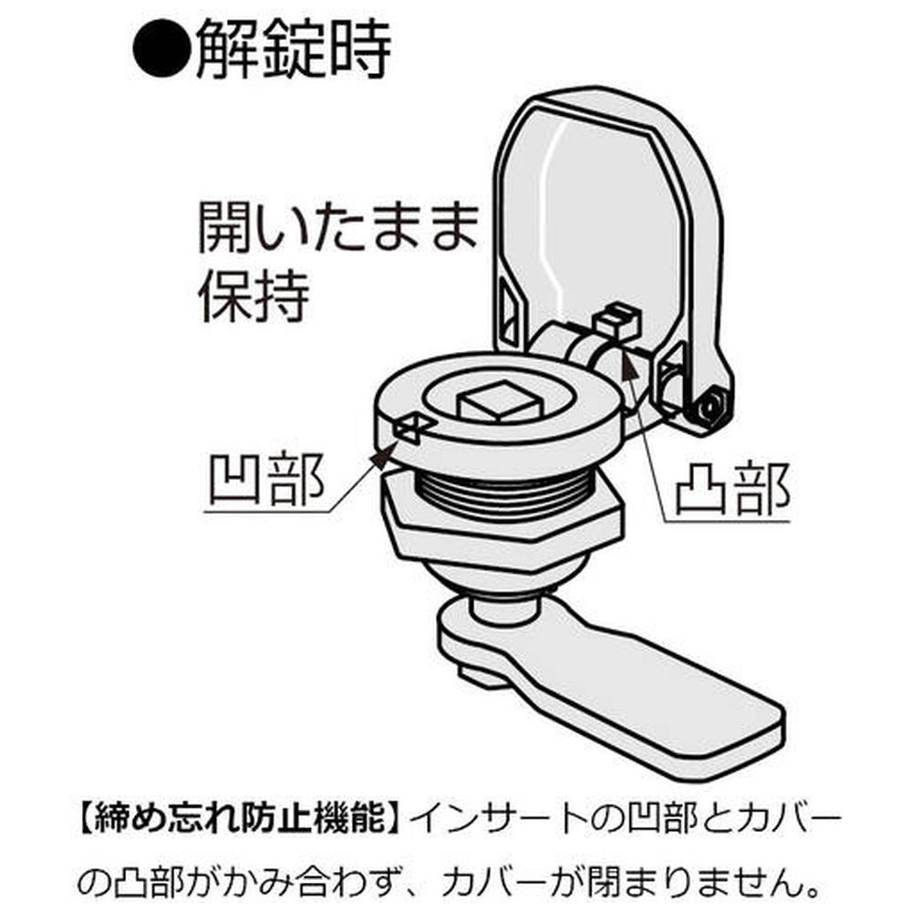 ■ばね入りのカバーが施錠時に閉まるため、雨や汚れがインサートに付着するのを防ぎます。
