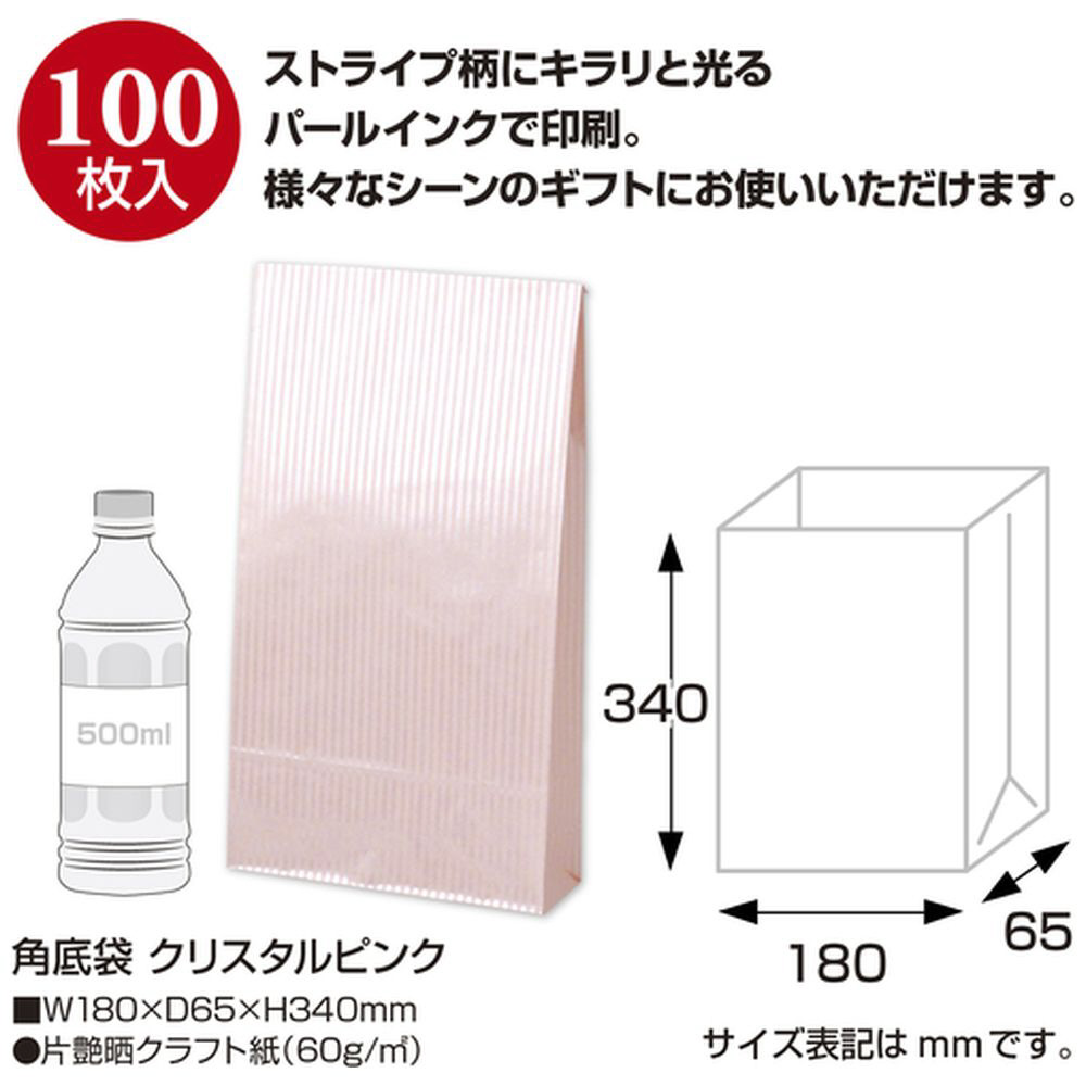 ギフトバッグ 角底袋 100枚入 [180×340×D65mm] クリスタルピンク 50-3710
