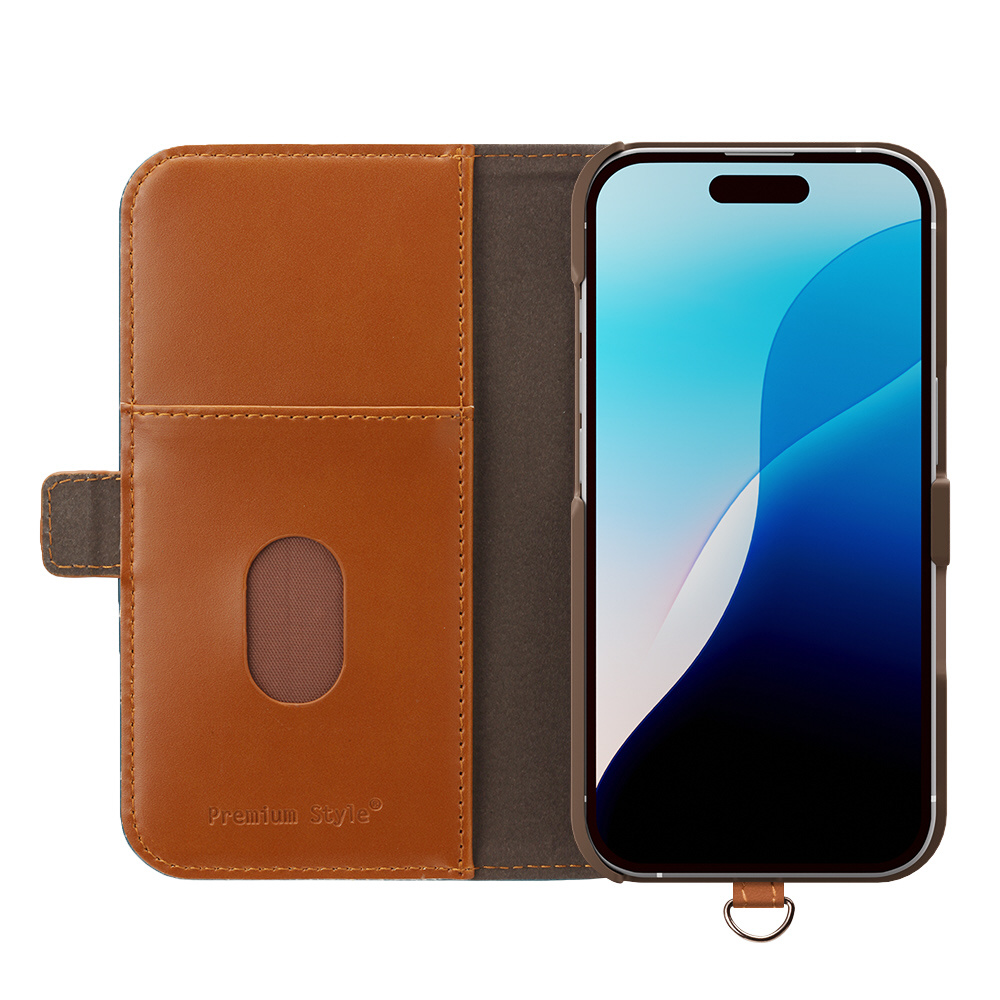 風合いの良い上質なPUレザー素材を使用したiPhone 16用 フリップカバー