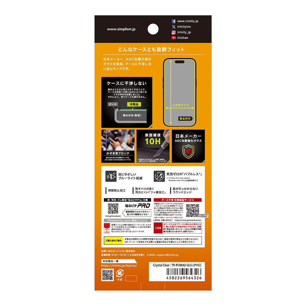 AGC社製強化ガラス採用 ケースに干渉しない安心サイズのプロテクター のぞき見防止