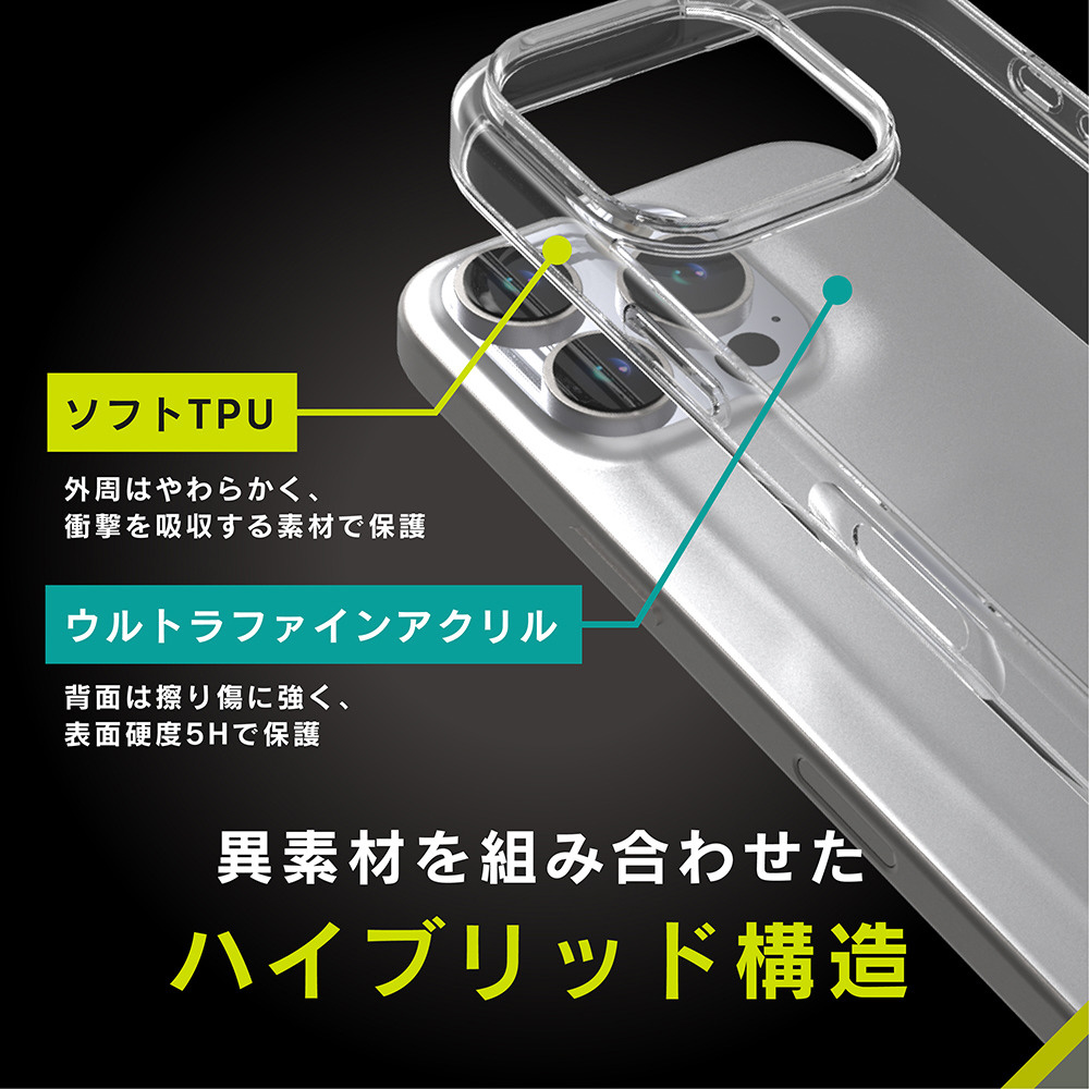 背面の超硬質素材×側面のやわらか素材 衝撃吸収 ハイブリッドクリアケース