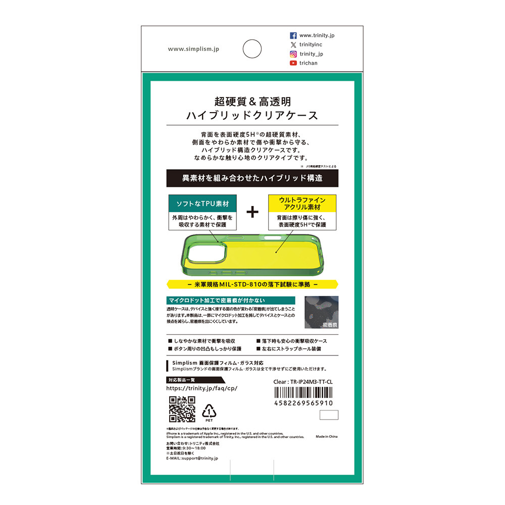 iPhone 16 Pro [Turtle] 超硬質&高透明 ハイブリッドケース クリア TR-IP24M3-TT-CL