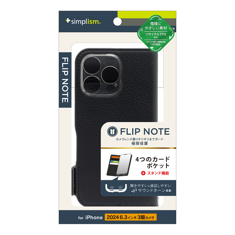 iPhone 16 Pro [FlipNote] 耐衝撃フリップノートケース ブラック TR-IP24M3-FN-SHBK
