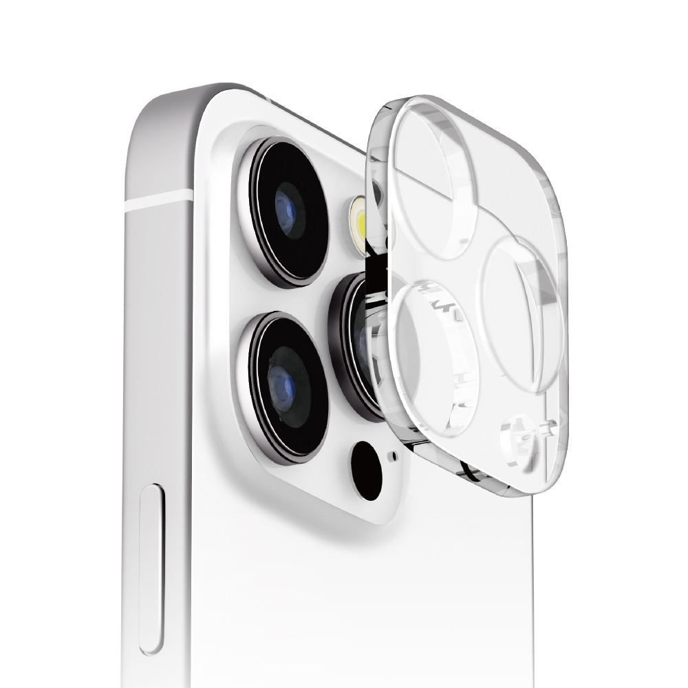 iPhone本体カラーを活かすフルクリアタイプの2024年 iPhone 3眼カメラ用 カメラフルプロテクター