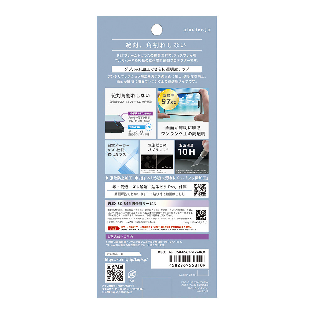 ajouter アジュテ iPhone 16(6.1インチ) [FLEX 3D] 最高峰の透過率 キレイに映す超高透明 複合フレームガラス ブラック AJ-IP24M2-G3-SL2ARCK
