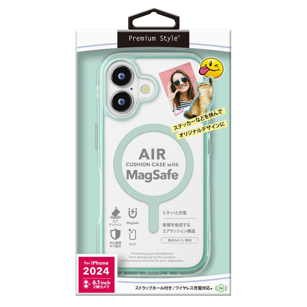 iPhone 16(6.1インチ) MagSafe対応 エアクッションケース Premium Style ミント PG-24AMGPTA04GR