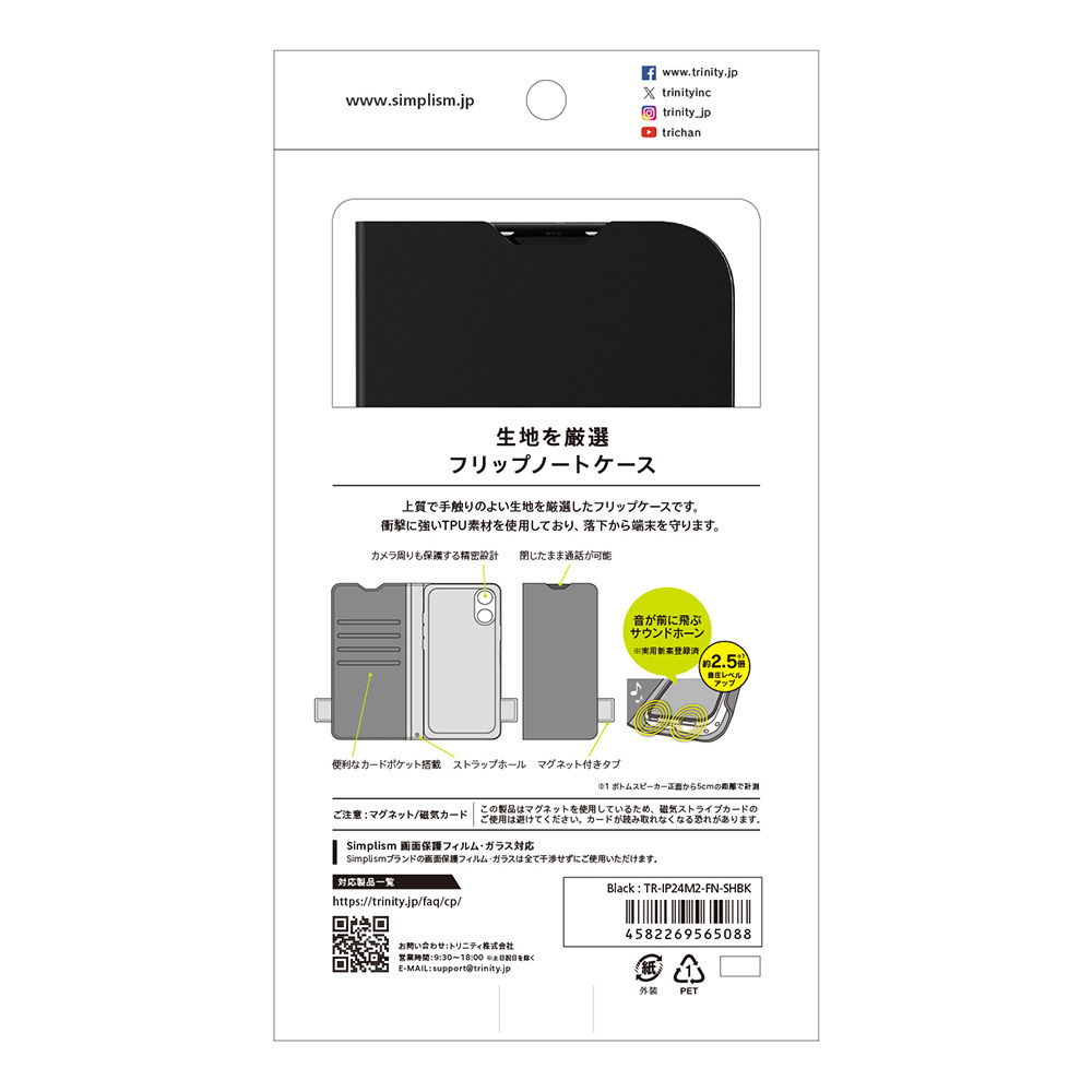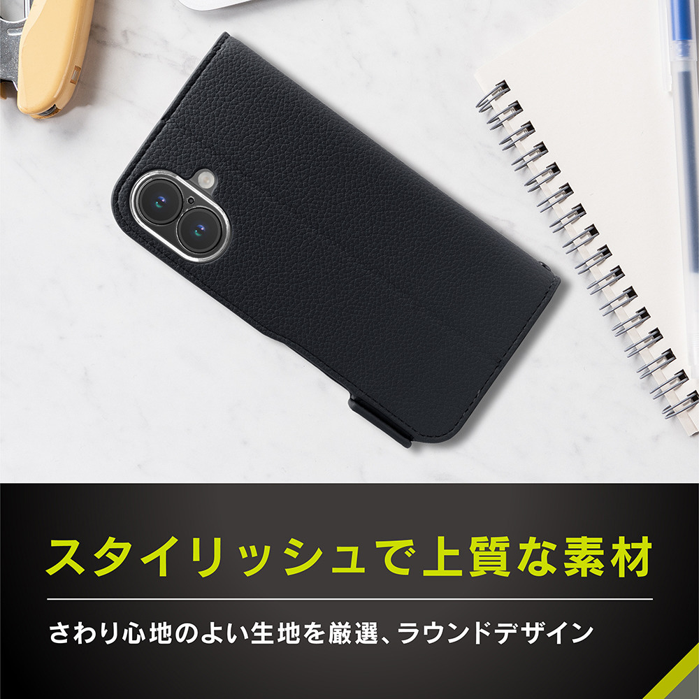 iPhone 16 [FlipNote] 耐衝撃フリップノートケース ブラック TR-IP24M2-FN-SHBK