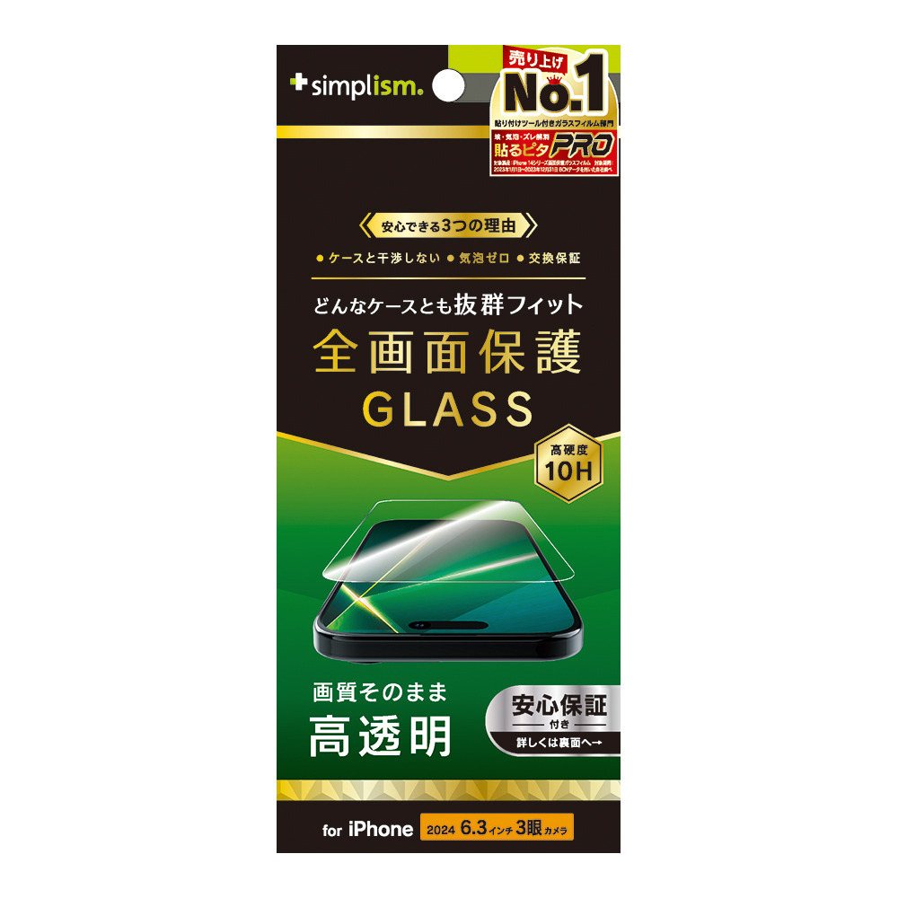 iPhone 16 Pro(6.3インチ)ケースとの相性抜群 高透明 画面保護強化ガラス TR-IP24M3-GLS-CC