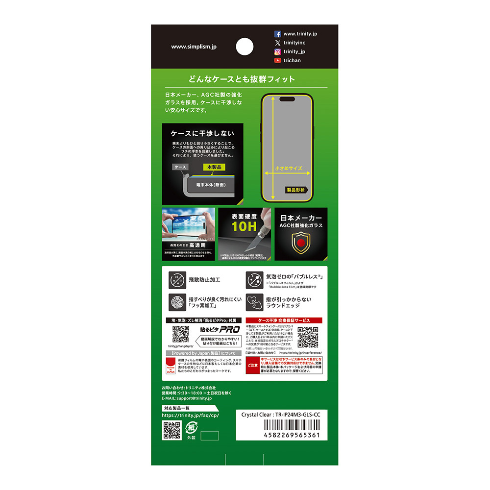 AGC社製強化ガラス採用 ケースに干渉しない安心サイズのプロテクター 画質そのまま 高透明