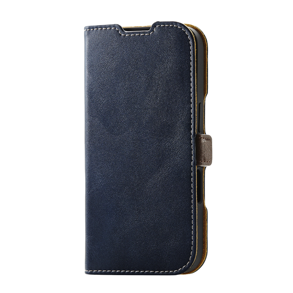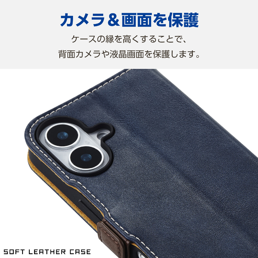 iPhone 16(6.1インチ) ソフトレザーケース 磁石付 耐衝撃 ステッチ ネイビー PMA24APLFYNV