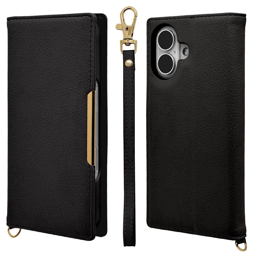 iPhone 16(6.1インチ) iLBE 手帳ケース+ハンドストラップ カードポケット ブラック 8180IP461BHSBK