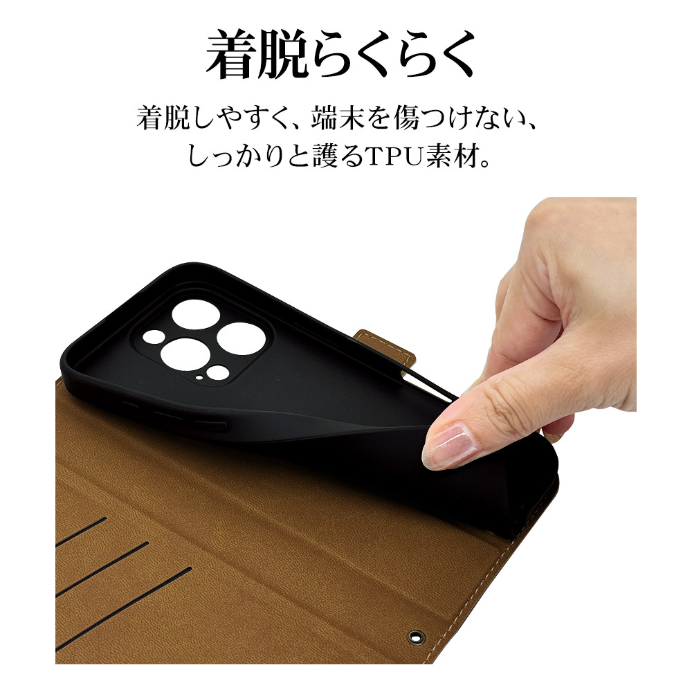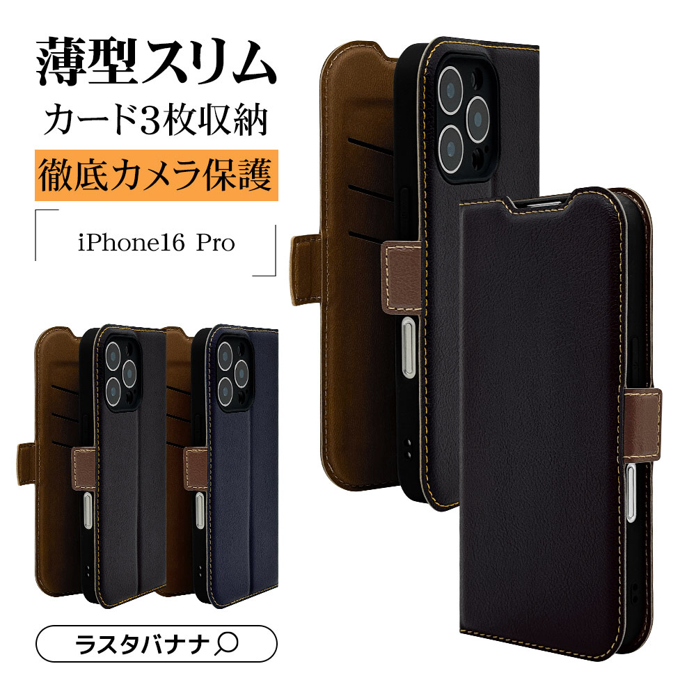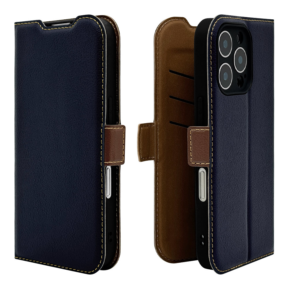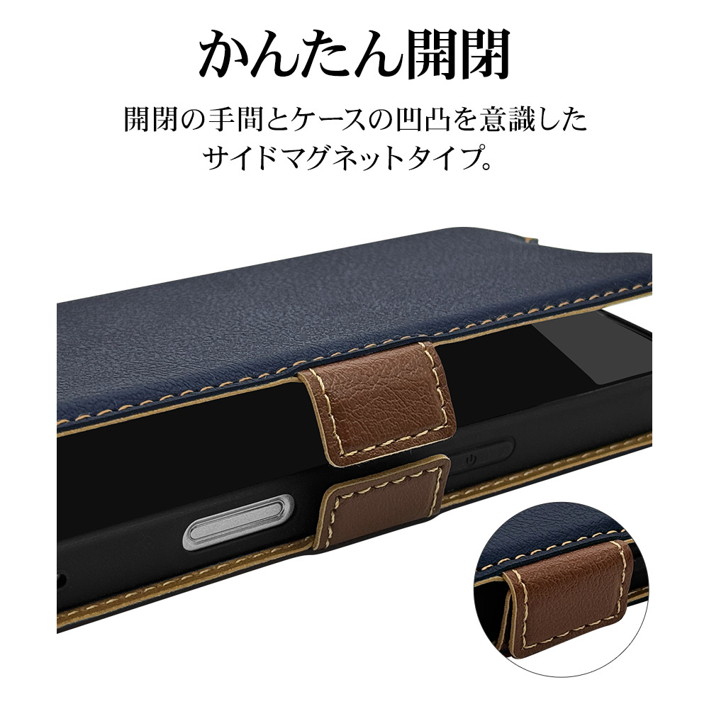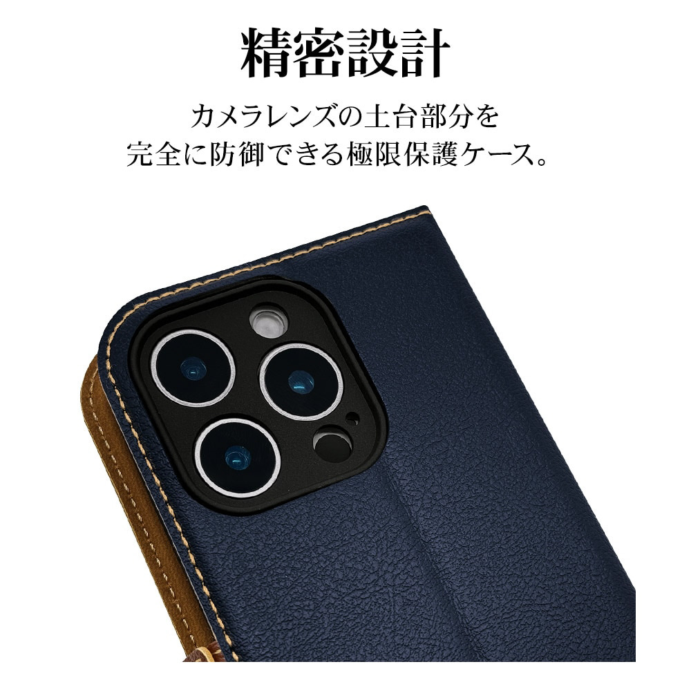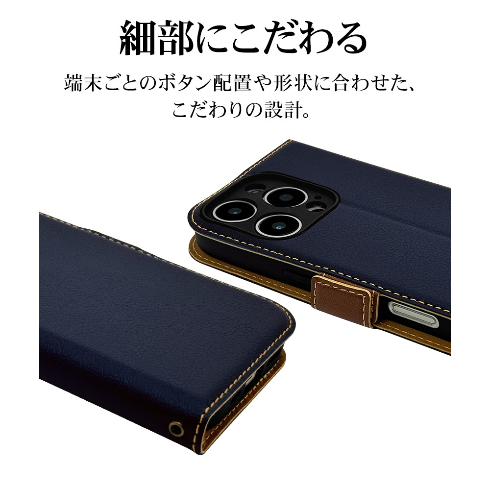 iPhone 16 Pro (6.3インチ)薄型手帳サイドマグネットケース カメラ周囲保護 衝撃吸収 ネイビーブラウン 8190IP461PBSMLNVB