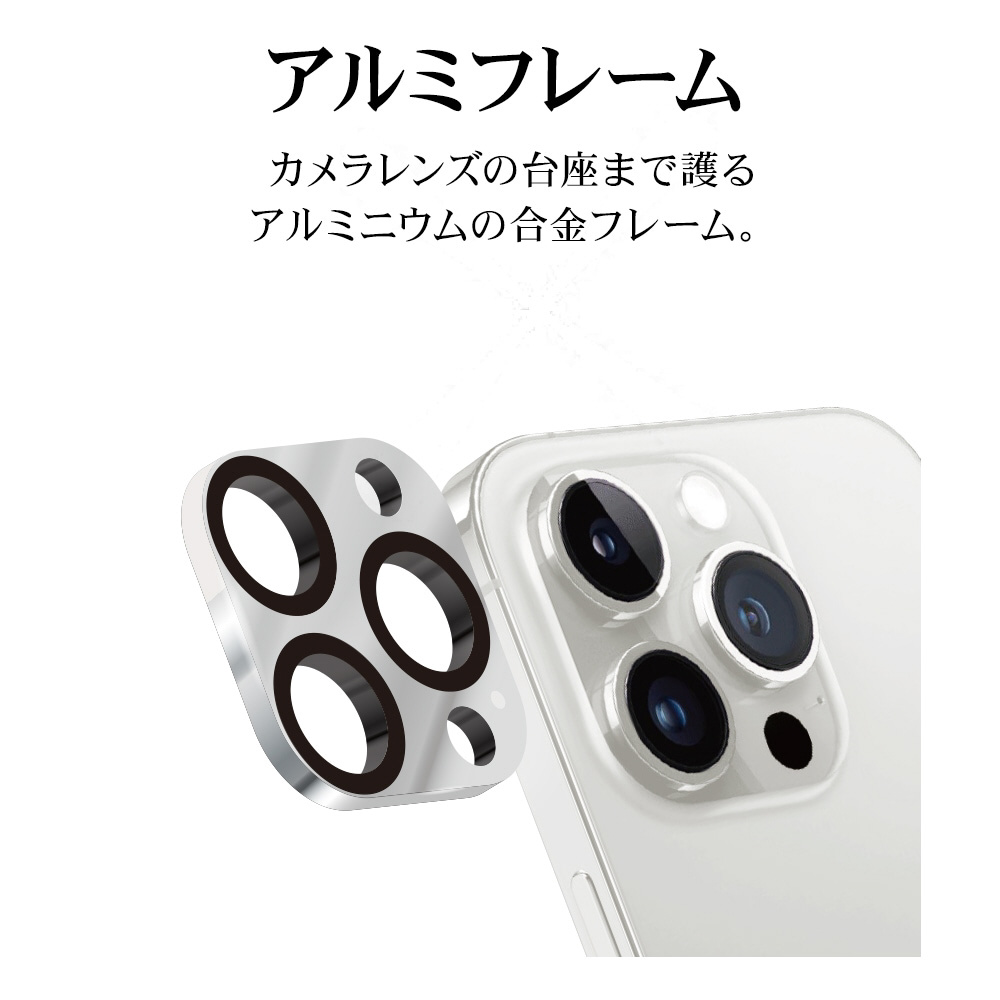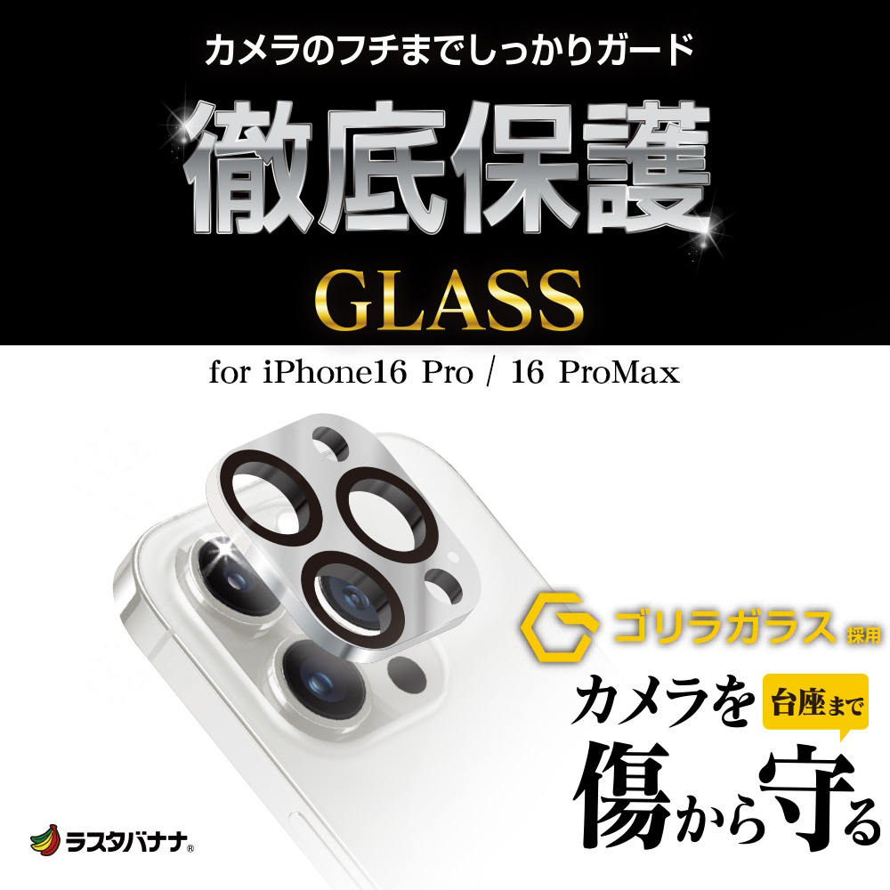 iPhone 16 Pro / 16 Pro Max 3眼用 カメラレンズ保護ゴリラガラス アルミフレーム シルバー CR4430IP4617P