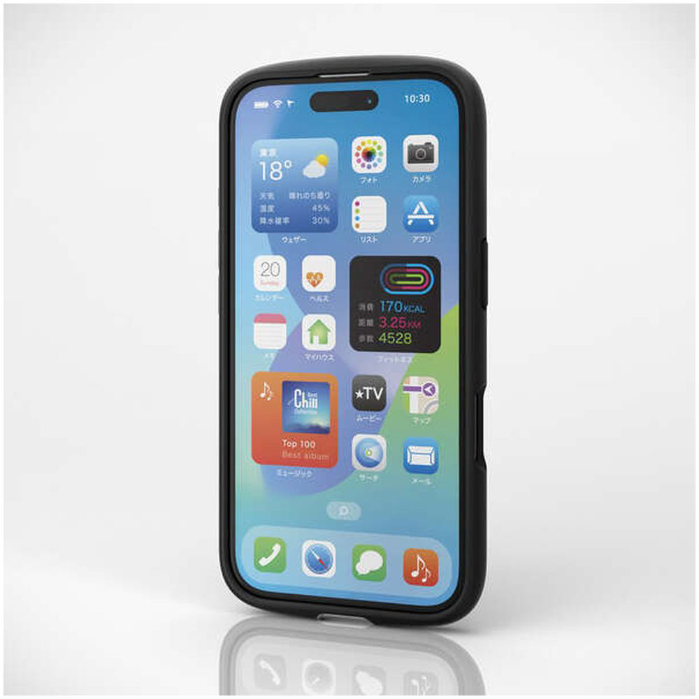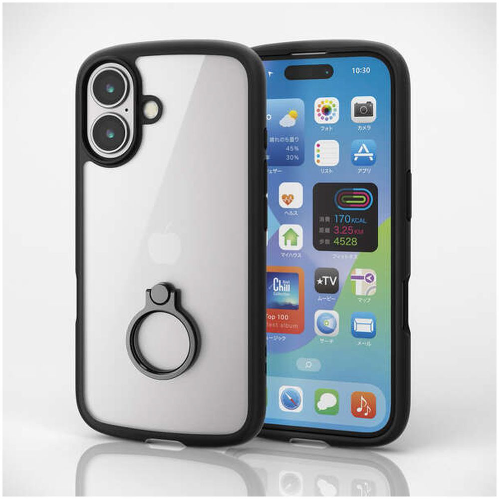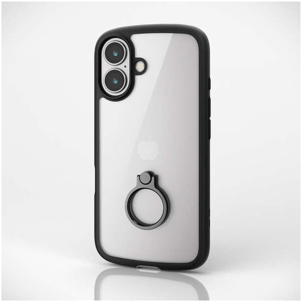 iPhone 16 ケース ハイブリッド カバー 衝撃吸収 軽量 薄型 カメラレンズ保護設計 ストラップホール付 リング付 スタンド機能付 硬度5H ストラップホールシート付 TOUGH SLIM LITE ブラック PMA24ATSLFCRBK