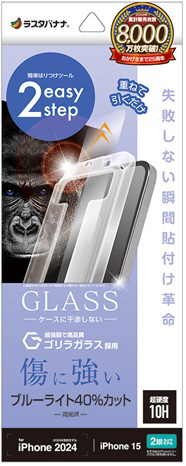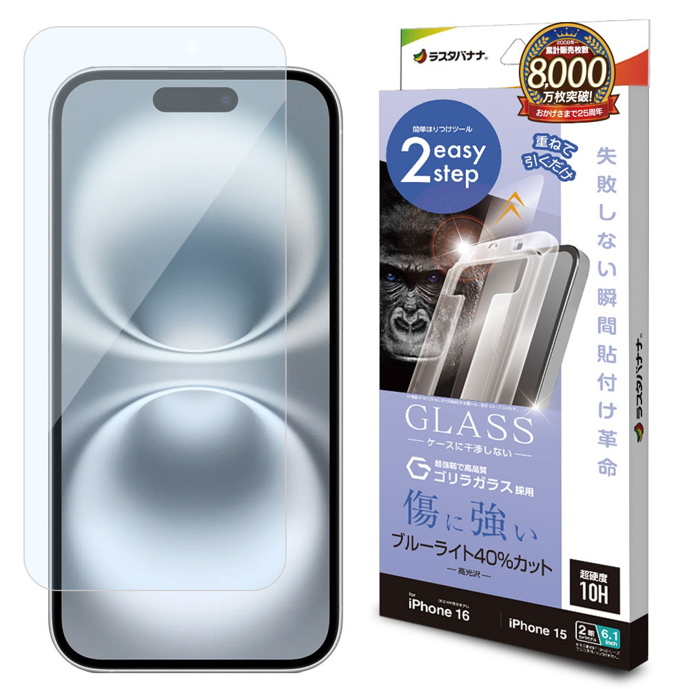 iPhone 16 / 15(6.1インチ) ガラスフィルム 瞬間貼り付け革命 ゴリラガラス ブルーライトカット 高光沢 MTK4522IP461