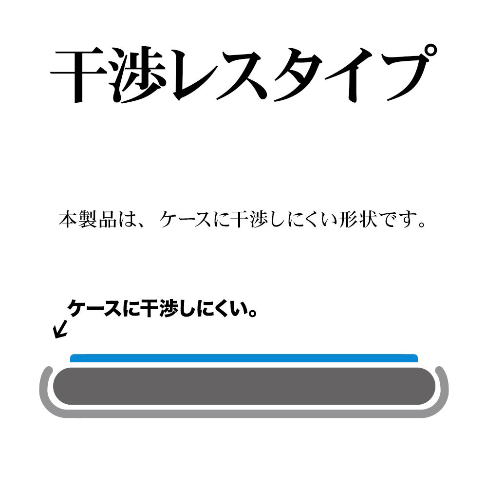 端末より一回り小さなガラスの為、ケースと合わせても干渉しない。