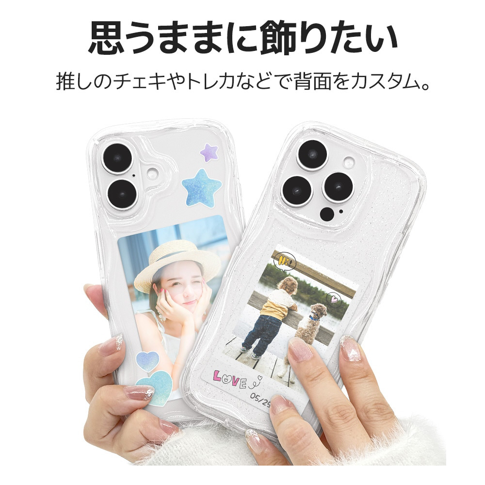 本製品は写真が挟めるウェーブフレーム付きTPU背面ケースです。
