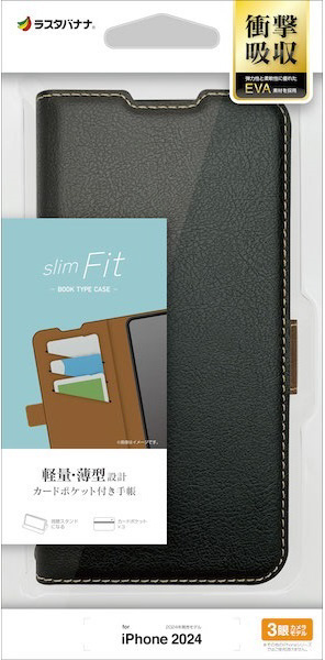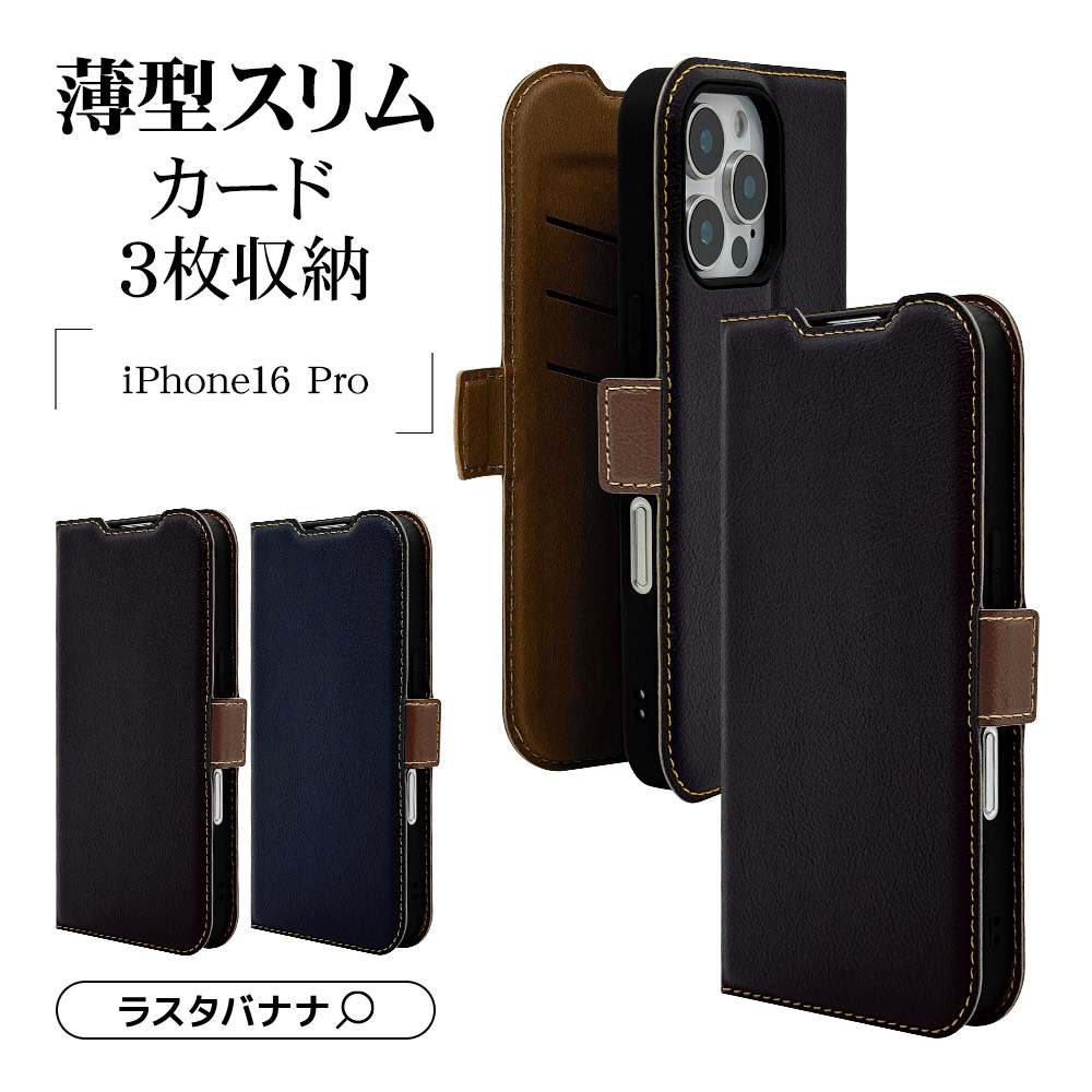 iPhone 16 Pro(6.3インチ)薄型手帳サイドマグネットケース 衝撃吸収 ブラックブラウン 8368IP461PBSMBKB