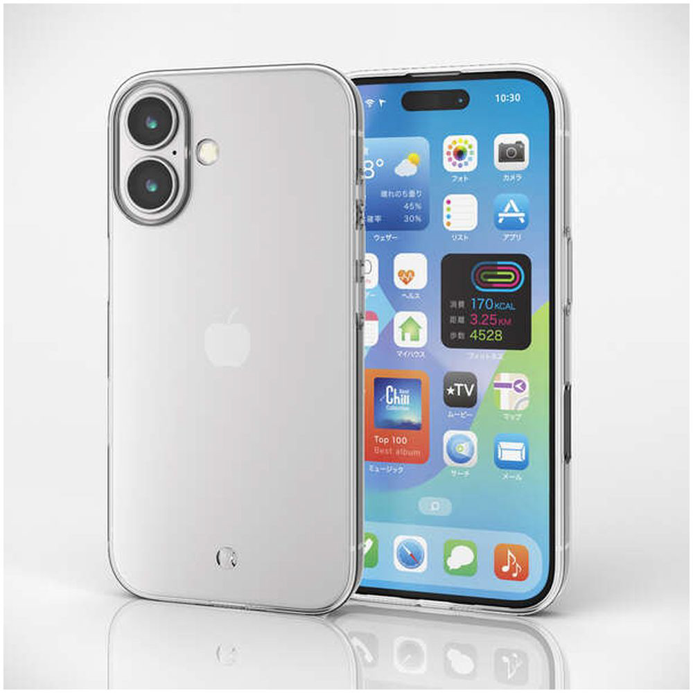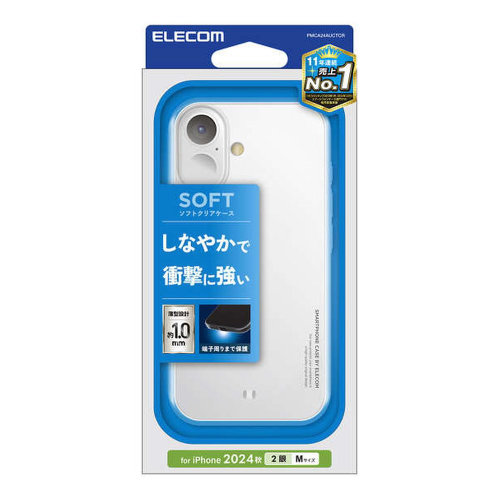 iPhone 16 ケース ソフト カバー 衝撃吸収 薄型 カメラレンズ保護設計 ワイヤレス充電可 ストラップホール付 クリア PMCA24AUCTCR