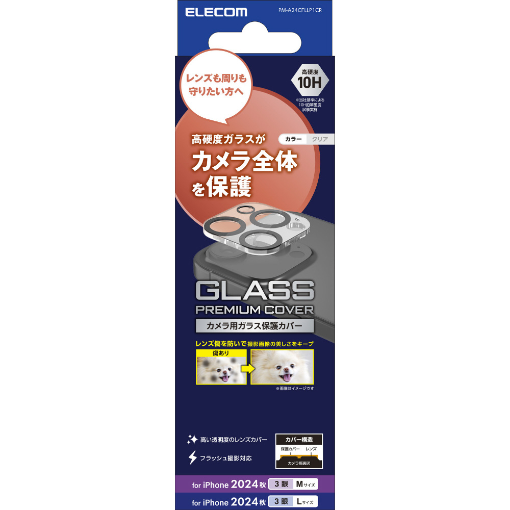 iPhone 16 Pro / 16 Pro Max カメラフィルム ガラス カメラ全体保護 高透明 強化ガラス 表面硬度10H 指紋防止 飛散防止 カメラレンズ保護カバー クリア PMA24CFLLP1CR
