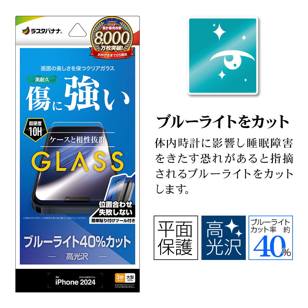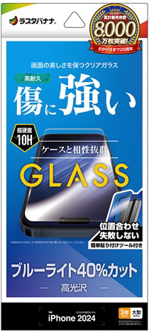 iPhone 16 Pro Max(6.9インチ) ガラスフィルム ブルーライトカット 高光沢 簡単貼り付け治具付き GST4484IP467P